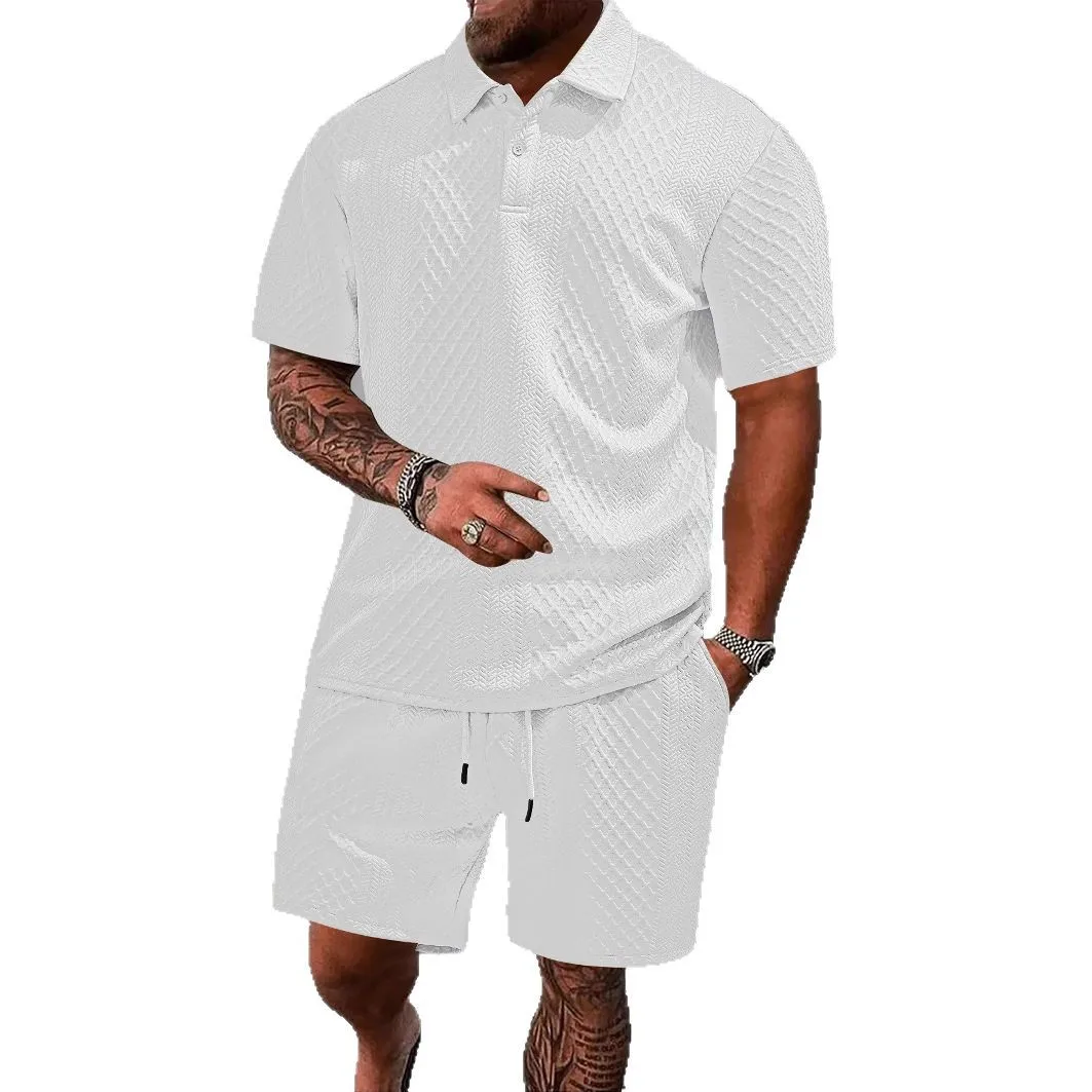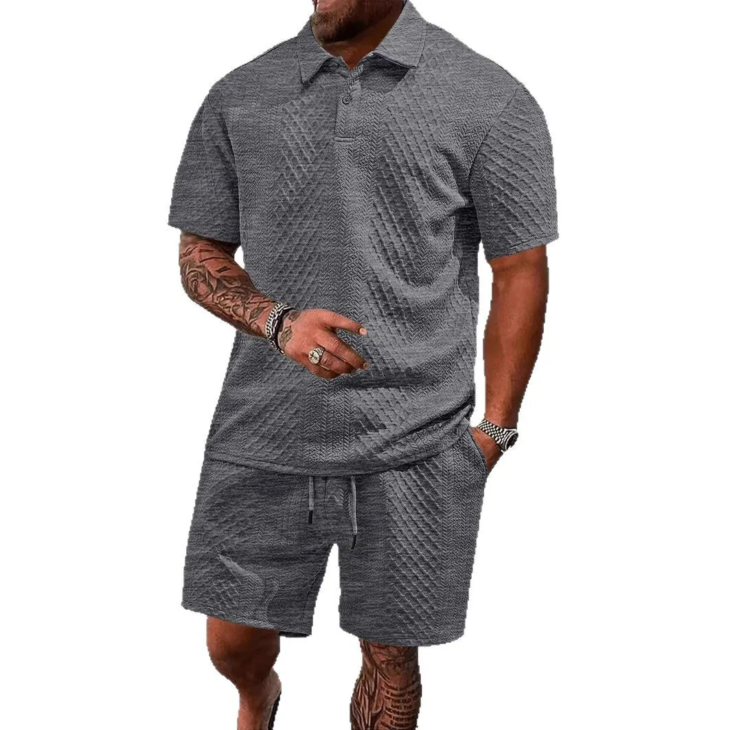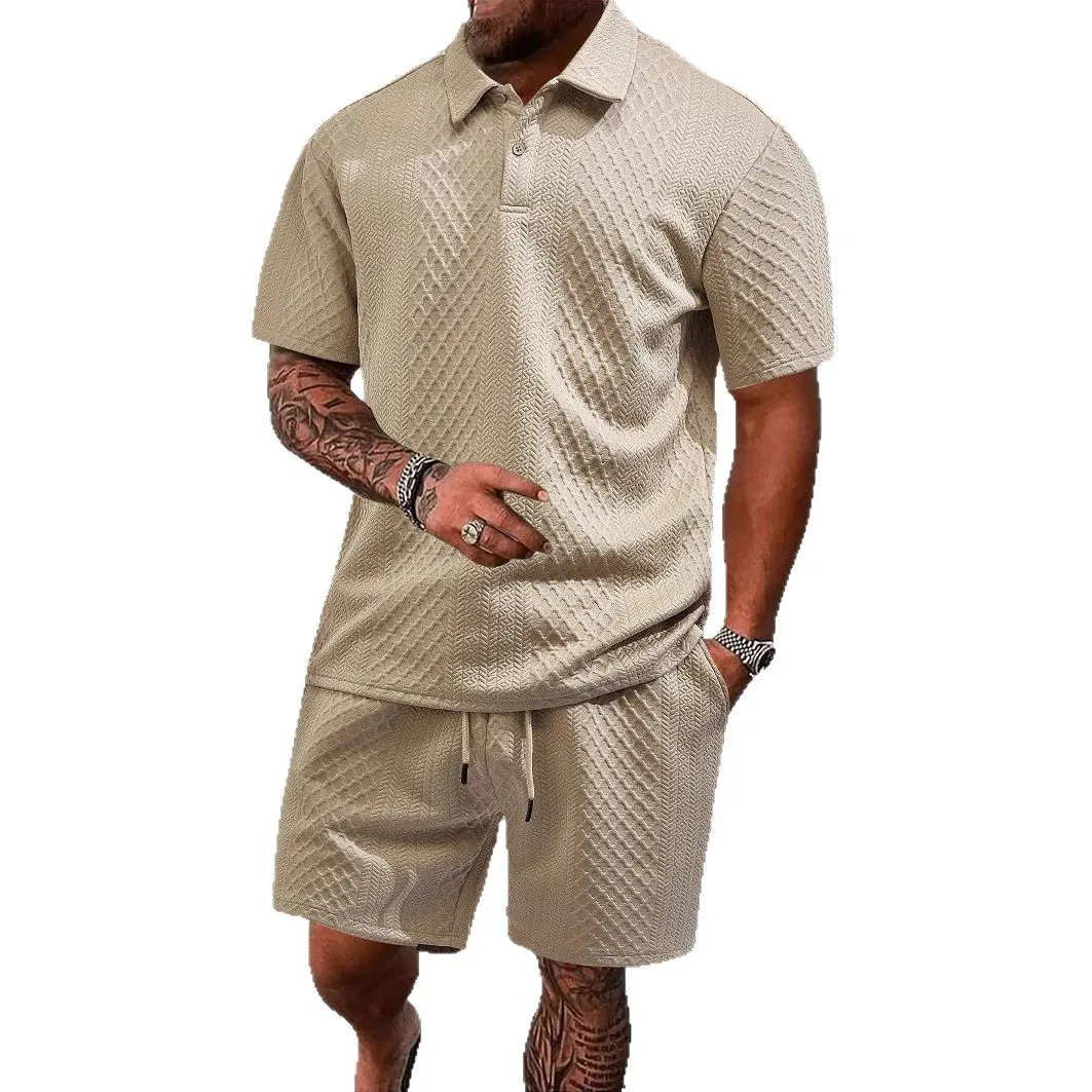 Men Summer Casual Fashion Jacquard Suit Set Casual Comfortable Polo Shirts And Shorts Set Suitable Daily Leisure Sport Occasions
