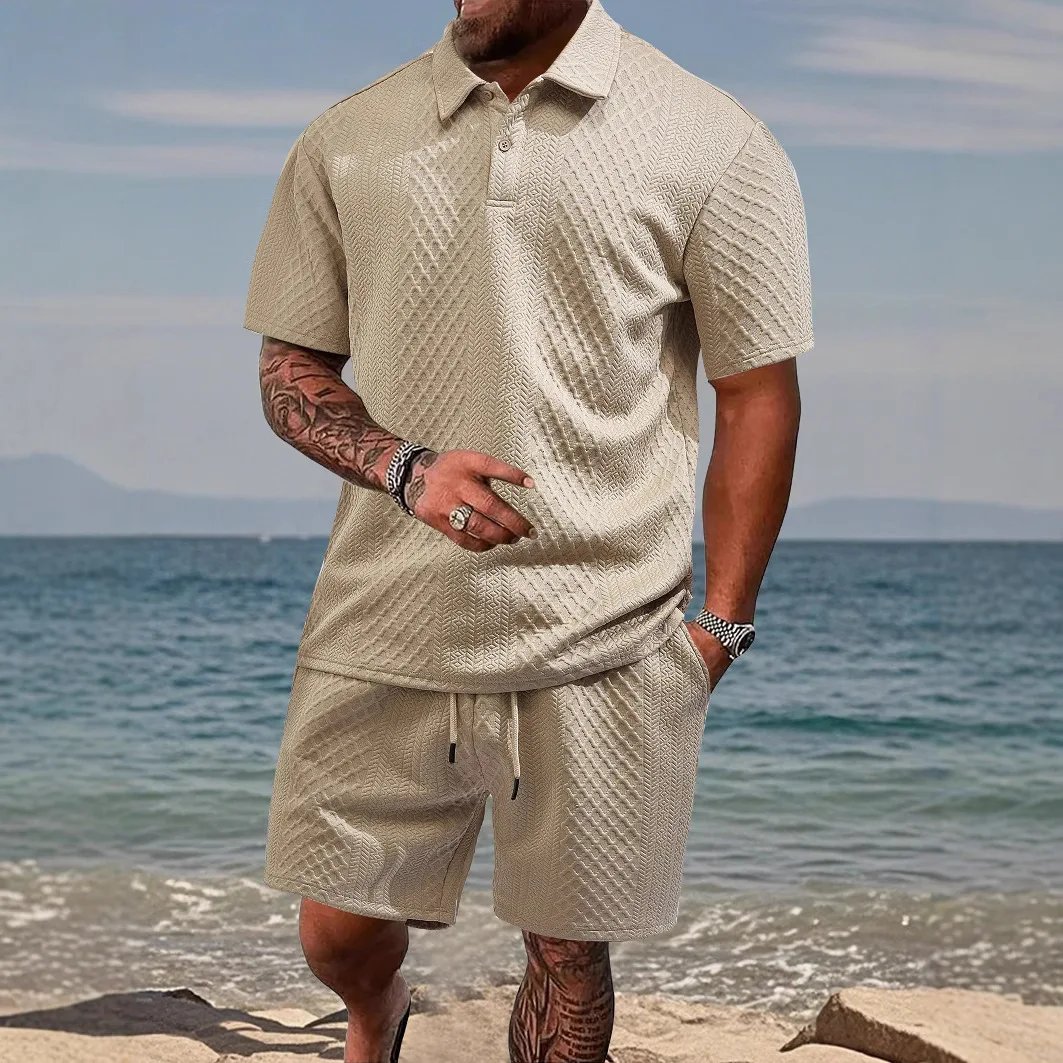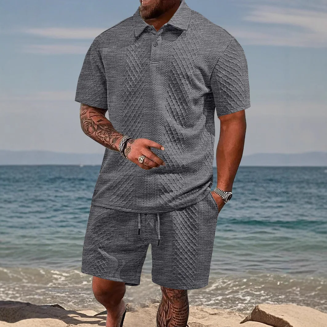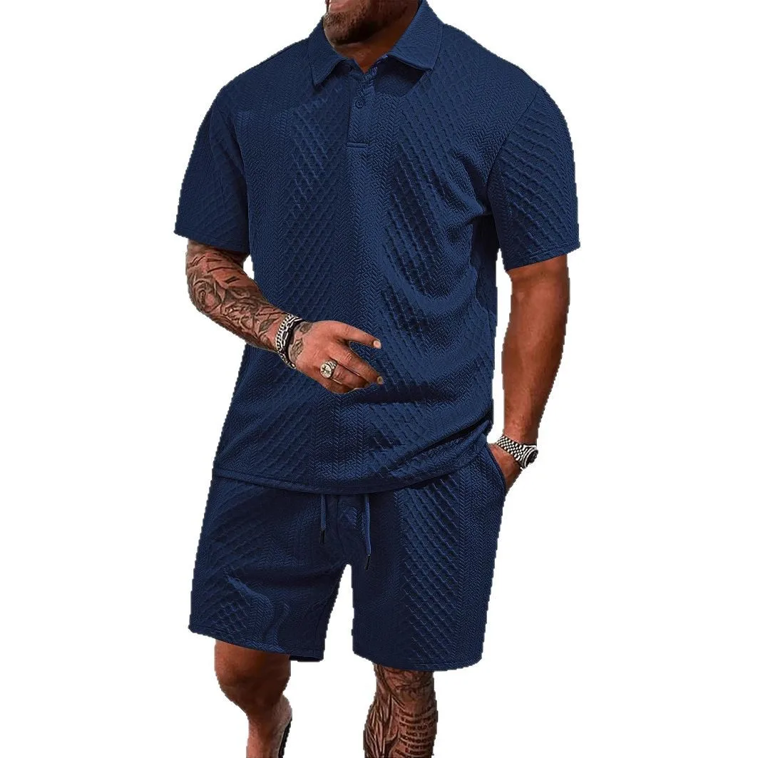 Men Summer Casual Fashion Jacquard Suit Set Casual Comfortable Polo Shirts And Shorts Set Suitable Daily Leisure Sport Occasions