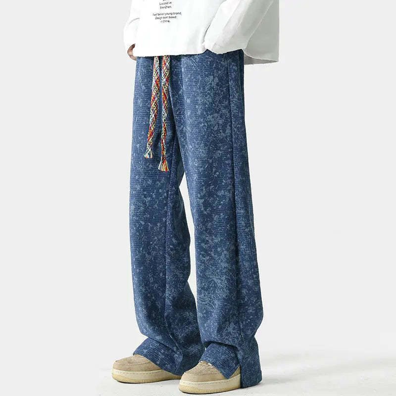 Textured acid-wash canvas flows from hip to hem in a relaxed silhouette, featuring artisanal braided drawstrings that add a touch of bohemian flair to these laid-back trousers.