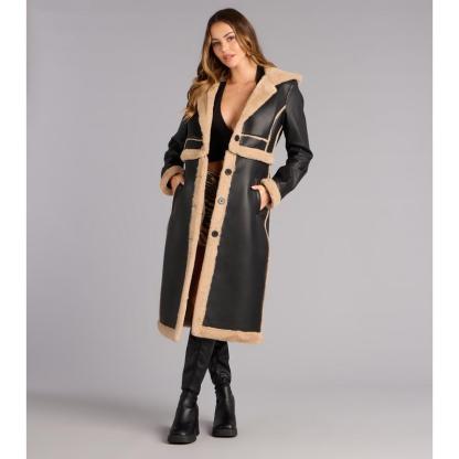A coat that works harder than half your closet—this convertible trench coat snaps from polished longline drama into a cropped jacket the second you feel like switching the vibe.Fit & Features·Faux leather fabric, soft faux fur lining·Lapel collar hooded neckline·Long sleeves, faux fur cuffs·Button-down front closures, side pockets·Detachable design for two-way wear·Longline hem·Runs true to size