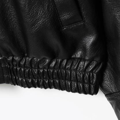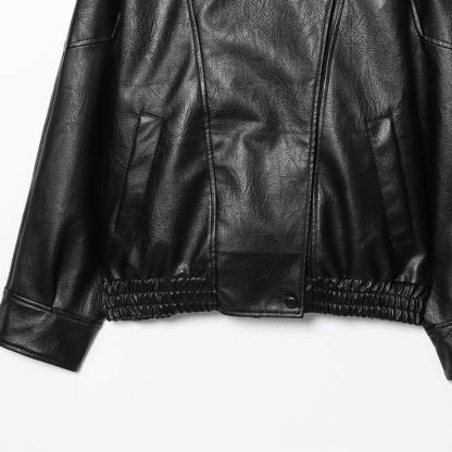 lack Faux Leather Jacket Stand Collar Oversized Moto Biker Jacket Elastic Hem Streetwear Casual Long Sleeve Waterproof Windproof Outerwear for Spring & Fall Ladies Clothes for Daily Wear - Coats active woman overcoat line dress slim-fitting style knit