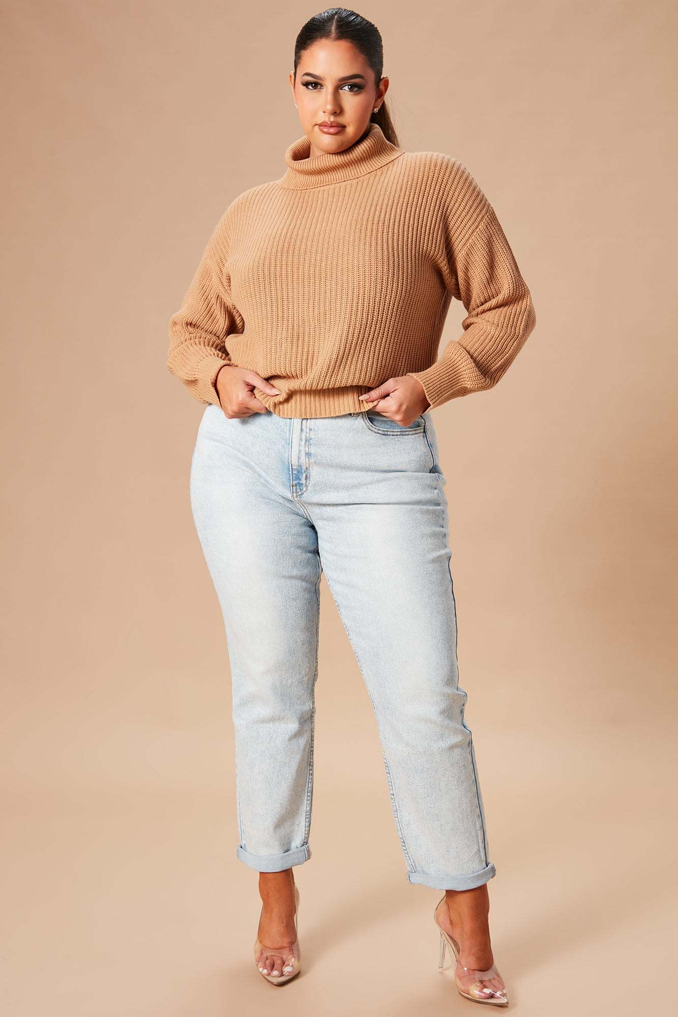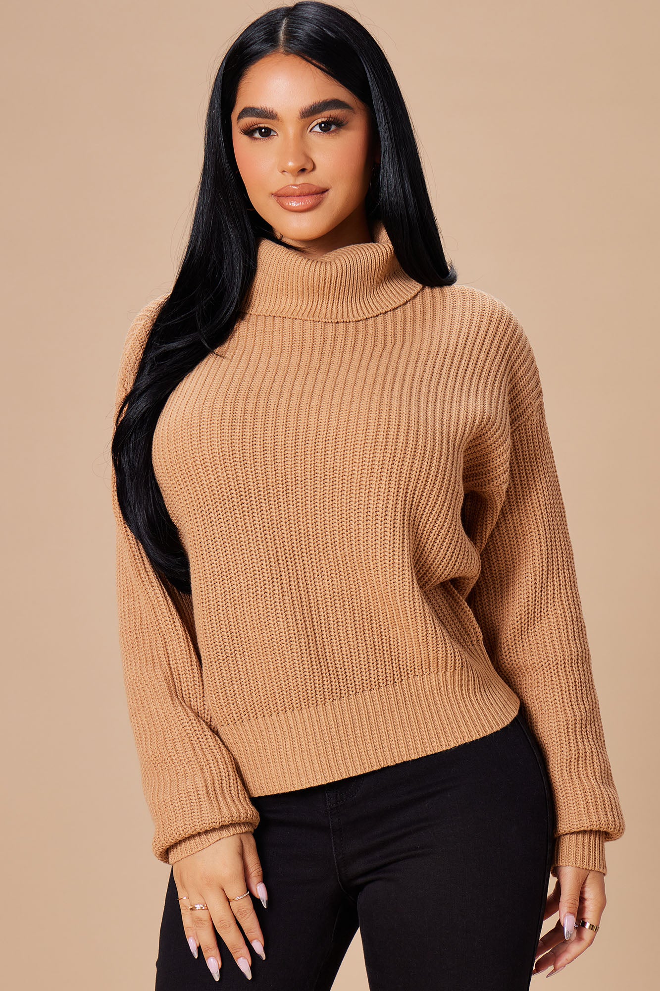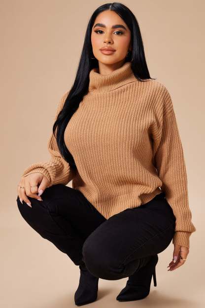 Roll With The Flow Turtleneck Sweater - Camel