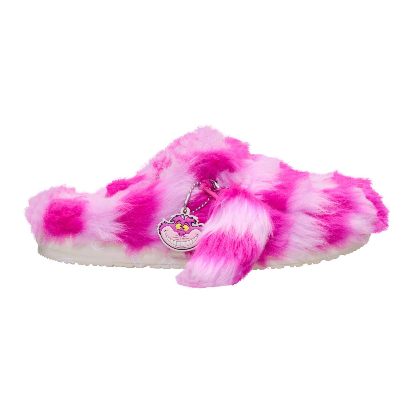 Down the rabbit hole of comfort... Our Alice in Wonderland x HEYDUDE™ Cheshire Cat slipper has all the plush goodness of our Wendy Slipper with a little extra madness. Iconic Cheshire Cat coloring, removable character keyring and a detachable cat “tail” you can attach to the back for even more whimsy. Great for exploring your backyard.
